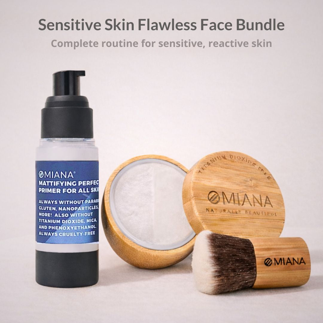 This three-step bundle is designed for sensitive, reactive skin that struggles with traditional makeup.Prep with a lightweight primer, softly set with a breathable mineral veil, and apply evenly using a gentle kabuki brush — without heaviness, irritation, or guesswork.